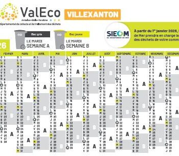 Calendrier de collecte des déchets 2026 – VILLEXANTON