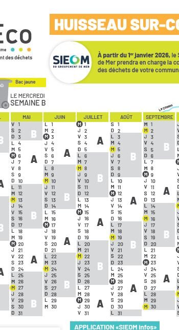 Calendrier de collecte des déchets 2026 – HUISSEAU-SUR-COSSON